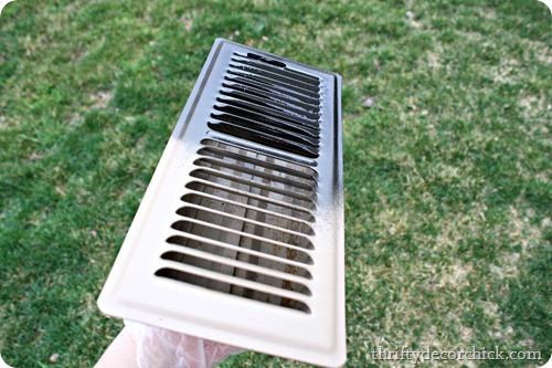 I showed you years ago how I started spray painting something on the floors that was sticking out to me – our registers. We used to have laminate floors that were a darkish reddish and I noticed immediately after they were installed that the light colored vents were sticking out like a sore thumb.