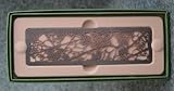 For that special book or friend. It's also a very appropriate gift for a teacher, graduate, or hostess. It will be cherished for a lifetime........ Reminiscent of antique Tiffany Studios style filigree, Zentrum Studios has combined turn of the century filigree design with 21st century metal finishing techniques...........ZENTRUM STUDIOS is producing a line of complimentary, contemporary, accessories to match old Tiffany Studios desk sets. They are unique in themselves and are not copies of anything Tiffany ever made. As with the antiques, the patinas will vary.